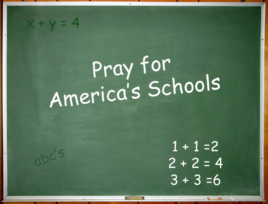 Lord, we thank you that we can boldly come before you in prayer for America. Please forgive us, because we as a nation have removed prayer from our schools. We have also allowed our government to remove your law from our courtrooms. Lord, we pray that you will put a hedge of protection around our schools and that you would protect our children from those who wish to cause harm. Please don’t allow our children to be tempted beyond what they can bear, but allow a way out for them. We pray that Christians in our schools will bear much fruit in the keeping of repentance and that they will have a boldness to take a stand and share their faith. We also pray that all teachers, staff and students will come to know and believe in Jesus Christ. We thank you that we are allowed to have after school Bible clubs and we pray that all schools in the United States will have these clubs. In Jesus Name Amen.