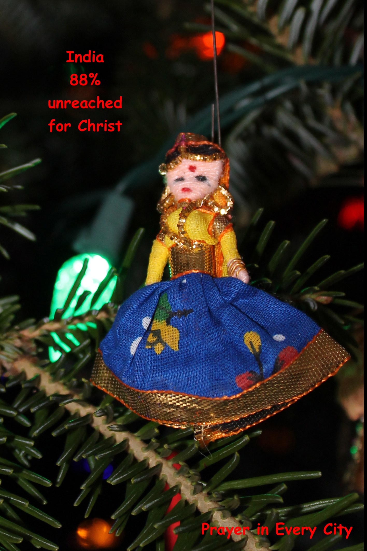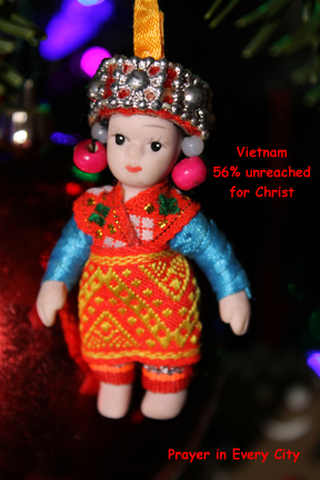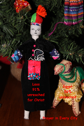 To make your own prayer tree, visit Operation World’s website and select a country from the list. Once you have selected a country, then look under the subheading, People, and click on “Unreached People Prayer Card“. You will be directed to the Joshua Project’s website prayer cards for that country. Print as many cards as you wish, hang them from your Christmas tree, and most importantly pray for these unreached people groups. If you don’t want to hang the cards, make angel ornaments and write the information on the back. This would be a great project for children.