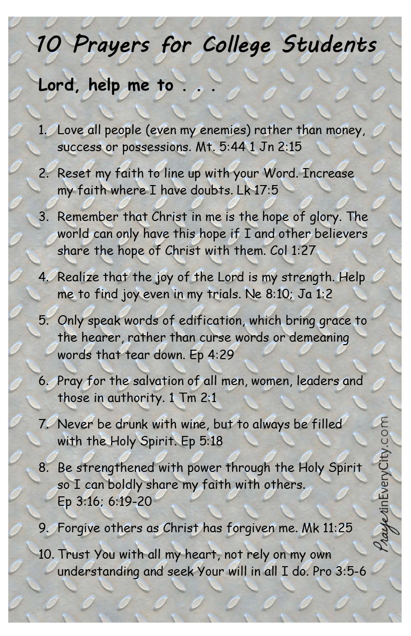 Click here if you would like to print these prayers: 10 Prayers for College Students