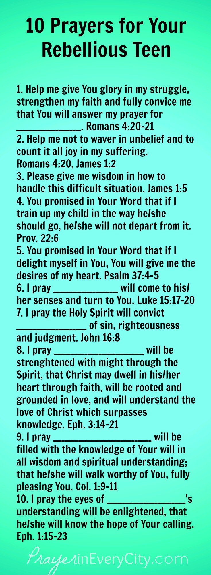Click here for a printable version for your prayer journal: 10-prayers-for-rebellious-teen