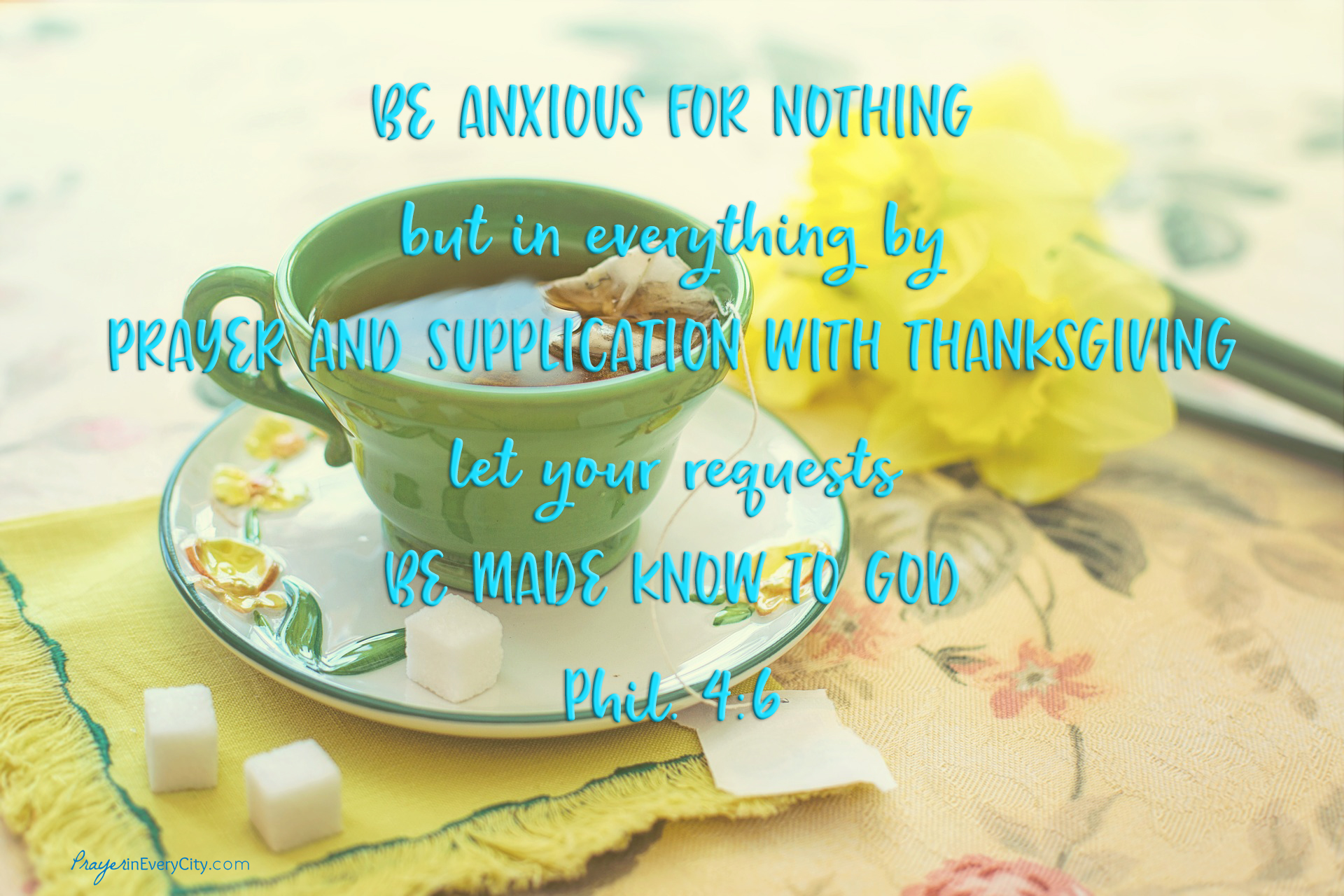 If we want our hearts to be filled with PEACE and JOY, we cannot be filled with anxiety. We all know this biblical truth, but it is easier said than done. How do we put these verses into practice and see results? Let us focus on verse 6. In order to get rid of our anxieties, we must pray about them daily. When we pray about our problems, we must leave them with the Lord by casting our cares on Him (1 Peter 5:7). That means don’t think about them and worry about them all day. We haven’t given the problem to Jesus when we choose to continue worrying about it. Pray about them, then leave them at Jesus’ feet.